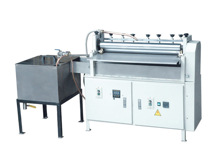 5. 在裱紙前先調節下膠軸調節手輪,使膠水厚度達到使用要求。并調節調節手輪,使上膠軸的壓紙力適合生產要求。