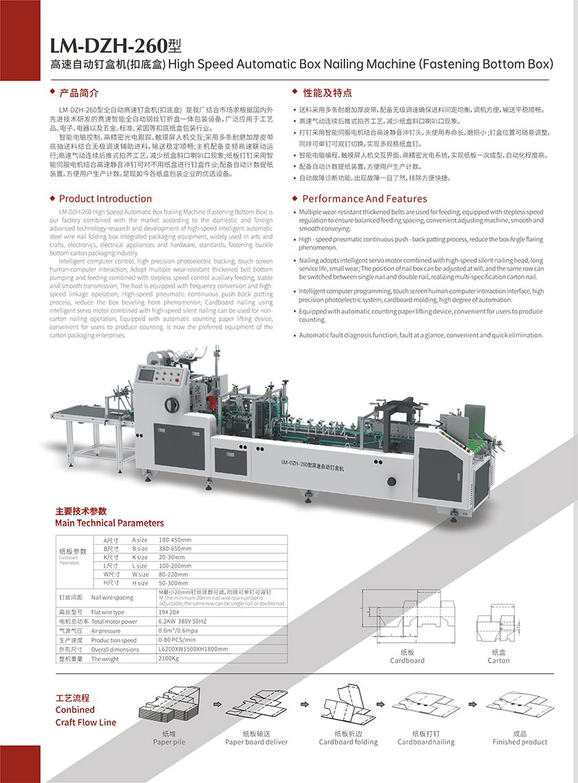 LM-DZH-260 full-automatic high-speed Nail Box machine(Buckle Bottom Box)is a high-speed