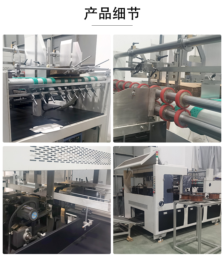 5、智能電腦編程控制、觸摸屏人機(jī)交互界面、高精密光電系統(tǒng),實(shí)現(xiàn)紙盒一次成型,自動(dòng)化程度更高。